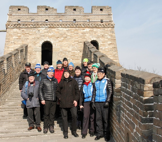 Ryhmä Leppänen Kiinan muurilla 1.1.2017. Kuvassa takarivissä vasemmalta: Pentti Montonen, Eero Leppänen, Jorma Pöyry, Touko Tuominen, Risto Kemiläinen, Jouko Haaranen, Matti Hannila, Kari Jylhä, Juha Toivonen ja Eija Silvan. Eturivissä niin ikään vasemmalta: Matti Korpela, Hannu Backman, Teuvo Valve, Airi Suni ja Kari Tamminen. (Kuvan ottanut Ursula Hannila Teuvo Valveen kameralla)