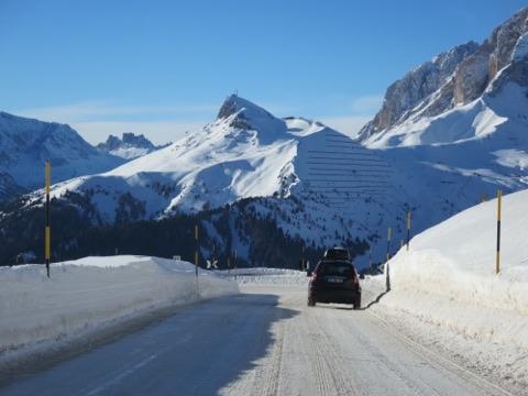 Dolomittenlaufista Lienzistä hiihtäjien matka jatkui Toblachin ja Cortinan kautta Val di Fiemmen laaksoon Marcialongaan. Tie oli varsin haasteellinen, kuten kuva navikaattoristakin kertoo, mutta maisemat olivat upeita.