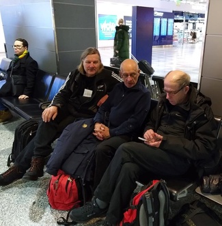 Worldloppetin Euroopan hiihdot ovat ilmeisesti alkamassa, koskapa Masterit Teuvo Valve (oik), Timo Suvanto ja Kymppimasteri Risto Kemiläinen ovat kuvattu Helsingin lentoaseamalla torstaiaamuna 17.1. matkalla kohti Itävaltaa ja melkein lumetonta Obertilliachia. Kuvan on ottanut Masteri Kari Jylhä.