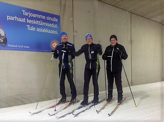 Hiihtokauden 2019-2020 avasivat Paimion hiihtoputkessa perjantaina 27.syyskuuta Esko Kaipainen (vas), Pekka Anttonen ja Juha Toivonen. Reilun puolentoistatunnin hiihdolla ja sen päälle saunomisella avattiin lihaksistoa Masterien jäsentapaamista 18.-20.10. Jämillä varten.