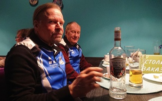 Sunnuntai oli meidän lähtöpäivämme kotimatkalle. Yöjunamme kohti Pietaria lähtisi kello 22.11 ja saapuisi Pietariin 8.53. Illaksi oppaamme Helen oli varannut meille ruuan läheisestä ravintolasta. Ravintolaan kävellessämme satoi vettä ja ilma oli paljon plussan puolella. Ajattelimme, että kävipä hiihdon järjestäjillä todella hyvä tuuri, että molemmat hiihdot saatiin hiihdettyä ja sunnuntain hiihto vieläpä loistavissa olosuhteissa. Ravintolassa ruuan lisäksi jaettiin oman 50 kilometrin hiihtonsa ajan perjantaina lähimmäksi merkinneille kaksi vodkapulloa, josta toisen oli lahjoittanut oppaamme Helen. Onnelliset voittajat eivät tyytyneet vain itse nauttimaan voittojaan, vaan niin kuin laulussa sanotaan ”pullo kiersi ringissä vaan”.