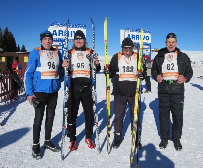 ![]() Lavazeloppetin aurinkoisilla laduilla tapasivat toisensa Matti Korpela ja ruotsalainen Ivan Karlova. Viereisessä kuvassa James Finnie Australiasta. Lavazen kuvat ovat Matti Korpelan ottamia. | ![]() |