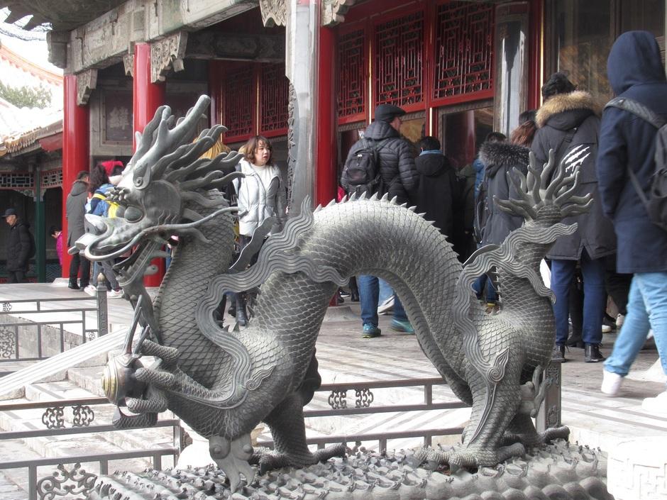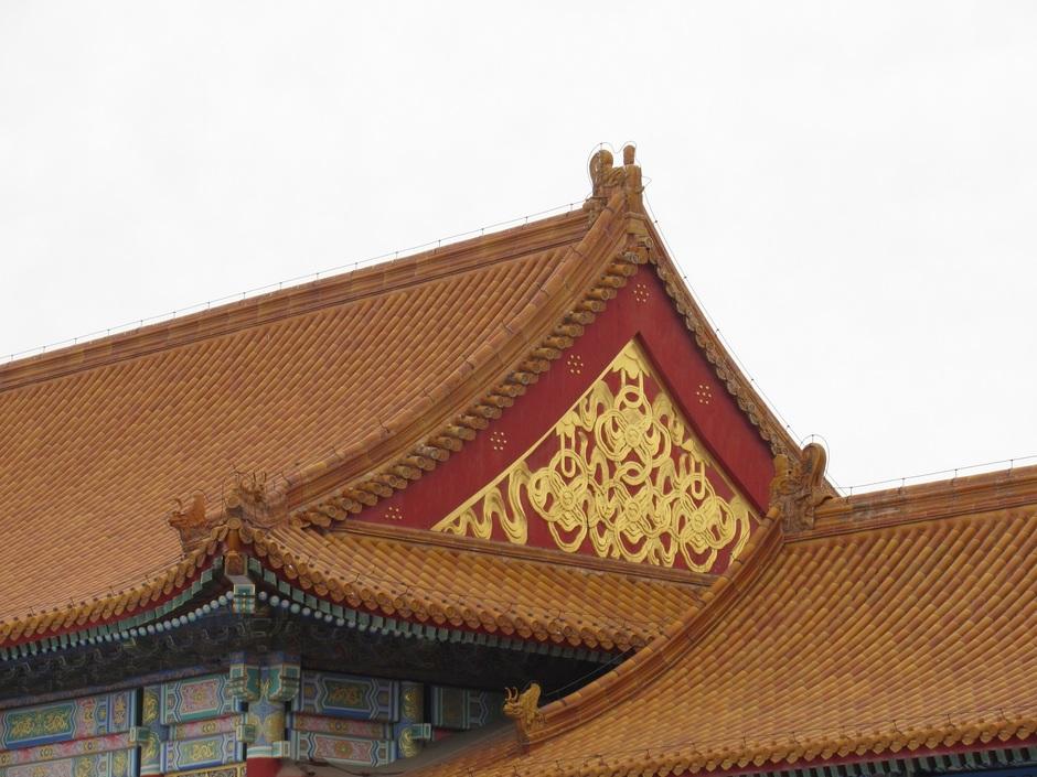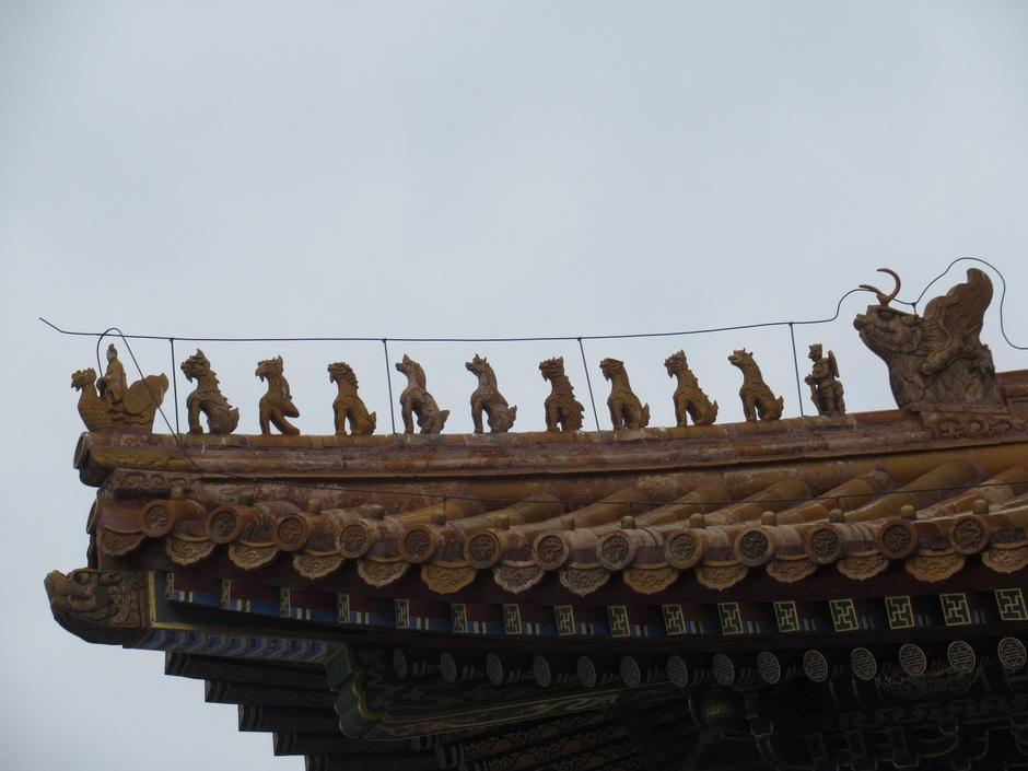 Kielletyn kaupungin taidokkaita koristeita rakennuksissa. Oikealla 9 eläinhahmoa, joilla kullakin oli jokin merkitys kiinalaisessa mytologiassa. (en nyt vain muista mitä ne olivat) Viimeinen hahmo on vartija.