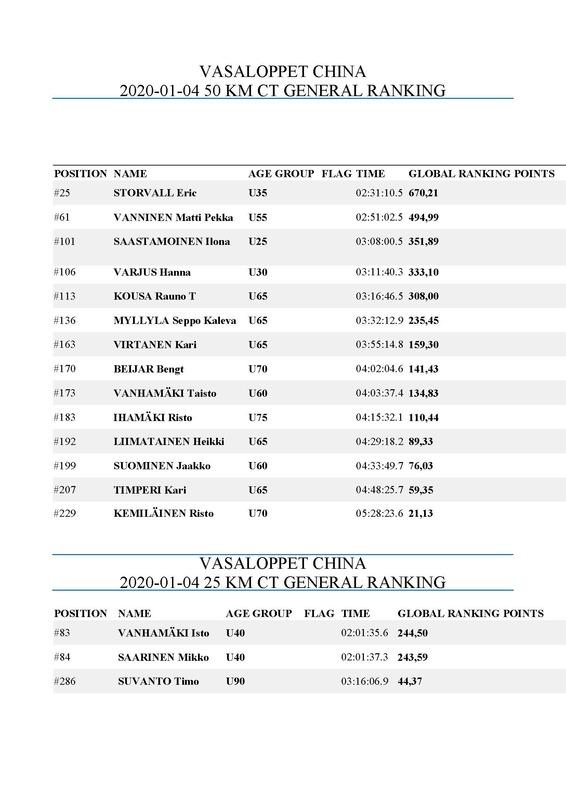 ensimmäisestä WL-hiihdosta - Vasaloppet Chinasta. Hiihto hiihdettiin 4.1.2020 Kiinan Changchunissa.