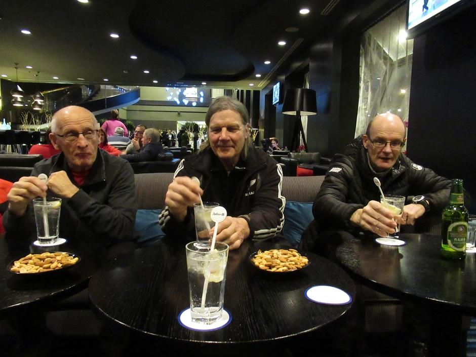 Rauno Kousa vas. näyttää mallia (no, ehkä siinä on jonkun muunkin tölkki?) Timo Suvanto,Risto Kemiläinen,Kari Virtanen oik.