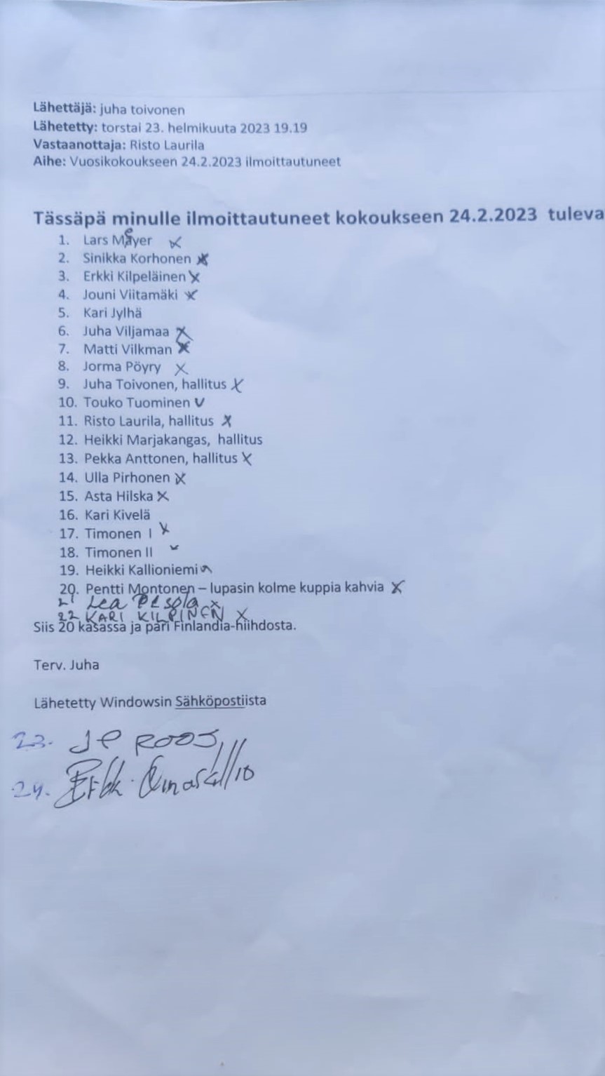 Vuosikokouksen 2023 allekirjoitettu pöytäkirja