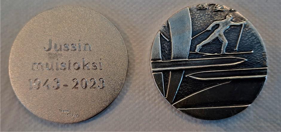 Juhani kuului myös Turun numismaatikkokerhoon. Saattoväki sai mitalin ”Jussin muistoksi 1943-2023.
