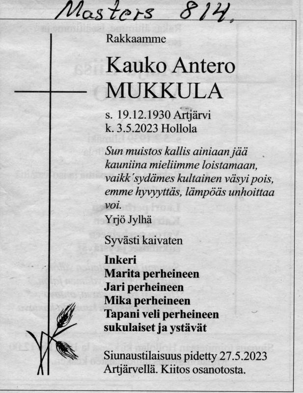Kauko Mukkula 1930-2023