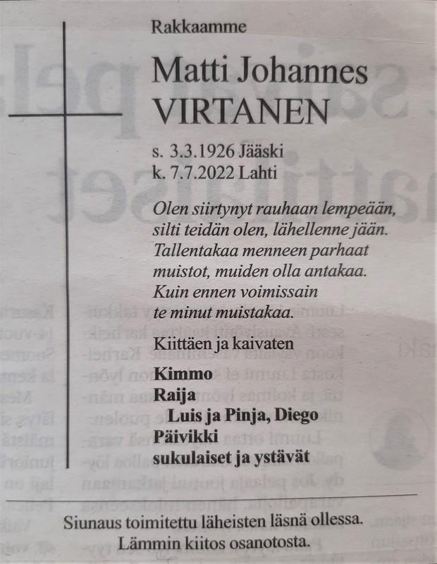 Matti Vrtanen 1926-2022