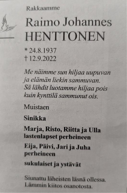 Raimo Henttonen 1937-2022