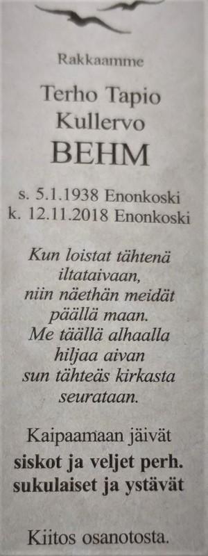 Terho Behm 1938-2018
