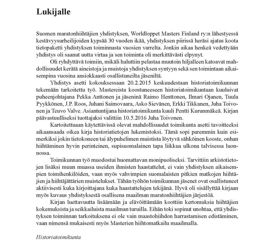 Osa 1, sisällysluettelo, lukijalle, Worldloppetin tervehdys