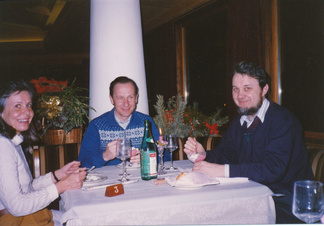 ![]() Hiihtomatkalla omalla autolla Itävallassa ja Italiassa tammikuussa 1991. Tässä nautin Cavalesen tunnelmia yhdessä vaimoni Ritvan ja Juha Enbergin (oik) kanssa Hotelli Trunkka Lunkassa. (Kuva Toivo Saikkonen) |