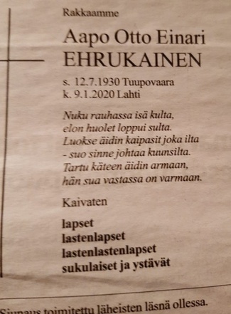 Aapo Ehrukainen 12.7.1930 - 9.1.2020