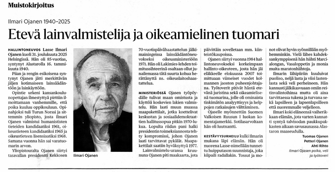 Yllä oleva muistokirjoitus on julkaistu Helsingin Sanomissa 3.2.2026.