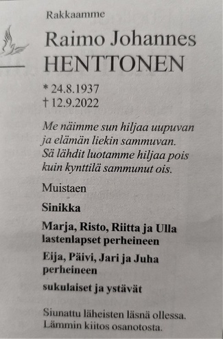 Raimo Henttonen 1937-2022