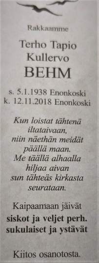Terho Behm 1938-2018