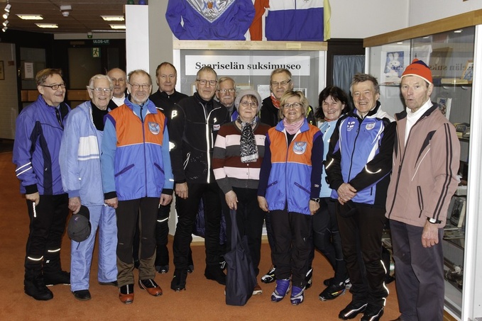 ![]() Vanhasten Hotelli Riekonlinnaan kokoamassa suksimuseossa Masterit ryhmäkuvassa: Juha Toivonen (vas), Asko Sievänen, Pentti Montonen, Matti Vanhanen, Touko Tuominen, Pekka Anttonen, Finlandia-hiihdon Ikineuvos Tuomo Tarvainen, Irma Anttonen, Risto Laurila, Kaarina Vanhanen, Maarit Kärkkäinen, JP Roos ja Terho Behm. Lapissa ja Saariselällä ollesasi kannattaa käydä Riekonlinnan suksimuseossa, siellä on paljon katsottavaa. (Kuva Teuvo Valve) |