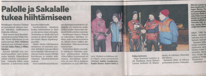 Vihdin Uutiset kertoi joulukuun 21.päivän 2014 numerossaan Worldloppet Masters Finlandin tuesta Vihdin Viestin hiihtäjille Jukka Palolle ja Mikko Sakalalle.