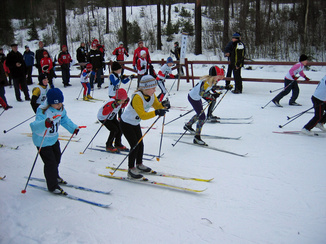 ![]() Maakuntaviestin 2007 yhteydessä hiihdetyn lasten viestin lähtö. (Kuva Alun kotisivuilta) |