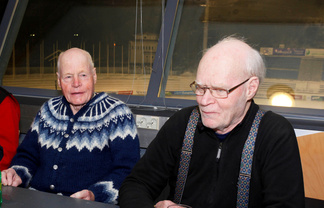 Kuvassa Larssonin Masters-veljet. Vasemmalla Hannes Larsson, hänellä virallisesti koossa 24 Masters-titteliä eli enemmäin kuin kellään muulla maailmassa. Vieressä Hanneksen veli Einar Larsson ja Einarilla on kuusi Masters-titteliä. |  Finlandia-hiihdon puheenjohtaja Juha Viljamaa toivotti niin suomalaiset kuin kansainväliset Masterit tervetulleiksi hiihtämään Lahteen. Hän kertoi, että hiihtojen eteen ovat sadat vapaaehtoiset tehneet valtavasti työtä ja niinpä hiihdot voidaan toteuttaa. Samalla hän kehotti hiihtäjiä tiettyyn varovaisuuteen, koskapa lunta on vain ladulla. |