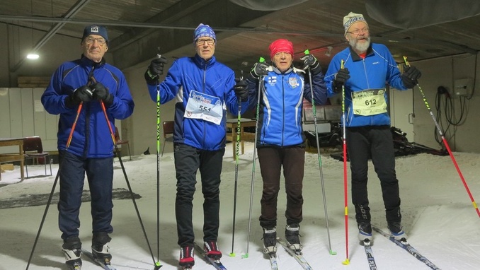 ![]() Kuvassa osa Paipissa hiihtäneistä ryhmäkuvassa: Kalevi Kairemo (oik), JP Roos, Pekka Anttonen ja Matti Rajasaari. |