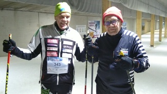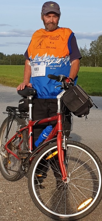 ![]() Pyöräillen Kangaroo Hoppetin suorittivat mm. konkariMasterit Juhani Enberg Liedosta yllä vasemmalla ja Lars Hagnäs Bennäsistä. Alakuvassa Paipissa hiihtäneet Kari Jylhä (vas) ja vieressä Juha Toivonen. | ![]() |