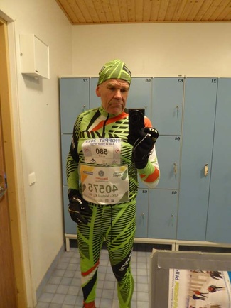 Suurin osa porukasta oli jo urakkansa suorittanut tai ainakin hyvässä alussa saapuessani Paimioon. Ei kun matkaan. Hiihdettävä matka oli 42 km, eli 60 kertaa Paipin 700 metrin lenkki ympäri. Korkeuserot eivät ole mittavia, mutta jo ekalla kertaa ainoassa nousussa, nousee sadan metrin matkalla 6 metriä, tunsin, että viimeiset nousut tulevat ottamaan koville.
