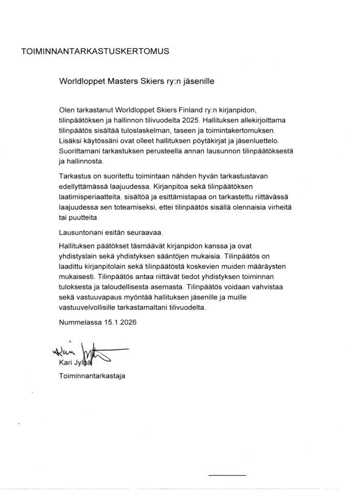 Toiminnantarkastajan lausunto