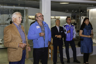 ![]() Vasaloppetin komeaa mitalikokoelmaa tarkastelevat Pauli Siitosen (oik) opastuksella tutkija Suvi Kuisma ja varapuheenjohtaja Risto Laurila. (Kuva Teuvo Valve) |