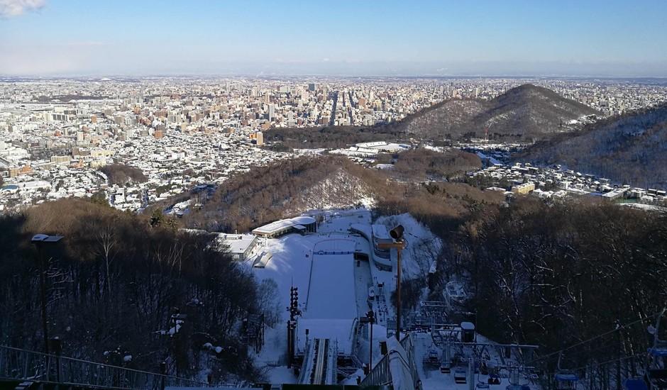 Sapporon kaupunki nähtynä vuoden 1972 olympialaisten mäkihyppystadionin, Okurayaman, tornista. (Kuva Ulla Yrjölä)
