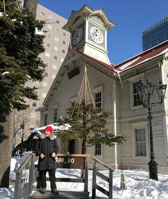 Arja Sapporon symbolin, Tokeidai-kellotornin poseerauskorokkeella.