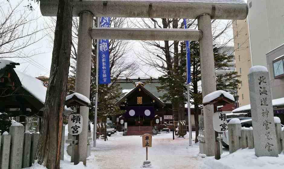 Hokkaido Shrine Tongu eli shintolaisuskonnen alttari majapaikkamme lähistöllä.