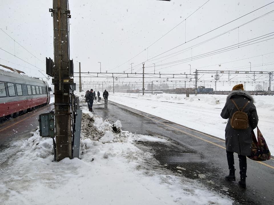 Kerkisin juur ja juur tilaamaani kolmen bussiin ja olin jälleen Hamarissa. Sapuskat eilisen konseptin mukaan ja odottamaan Risoa. No tulihan RIstokin lopulta. Aamulla sää oli muuttunut täysin. Matkatavarat raahattiin lumikinosten läpi asemalle. Lunta satoi todella rajusti. Hiihto olis tuossa kelissä todennäkäisesti jäänyt hiihtämättä. Junalla Gardermoeniini ja Finnairilla kotiiin.