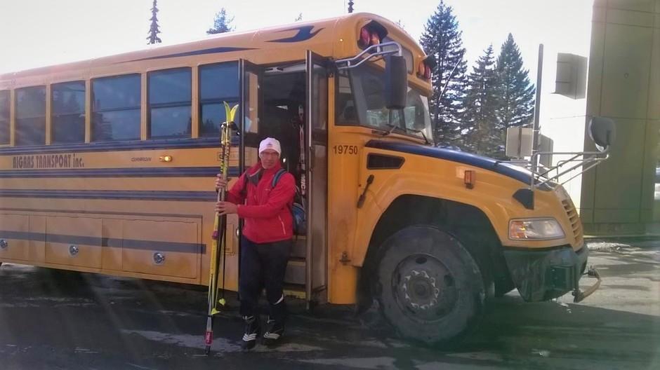 Vi som skulle åka klassiskt blev upphämtade från hotellet av en gul skolbuss (sådana som man ser på filmer och i TV – se foto) tidigt på lördag morgon. Från målområdet kördes vi vidare till starten i La Péche. Vi hade en fin dag i spåret med solsken, lite motvind i början och 5-6 grader kallt. Spåren blev glatta och man kunde parstaka rätt mycket. Terrängen i Gatineau är omväxlande lite kuperad med en kraftigare stigning från 31 -36 km och på slutet långa skidbara motlut och nedförsbackar.