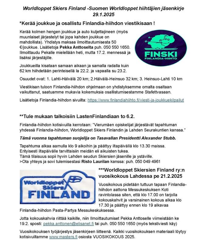 Viestihiihdon ja LastenFinlandian tulostettavissa oleva informaatio.