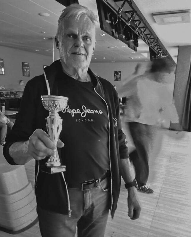 Skiersien ensimmäiseksi keilamestariksi heitti itsensä tässä kolmen kierroksen kisassa kuvassamme pokaalin kanssa poseraava Matti Hannila.